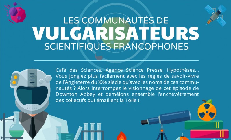 Tags: communication scientifique CSTI Infographie Vulgarisation Vulgarisateurs Sciences Collectifs Communautés Café des Sciences Vidéosciences Strip Science Agence Science-Presse Hypotheses.org Arte radio Audioblogs Collectif Conscience Blogs UP Sciences et Avenir Pour la Science Le Monde Libération